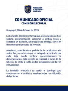 Comisión Electoral de la FEF solicita documentación adicional a las listas en proceso de calificación