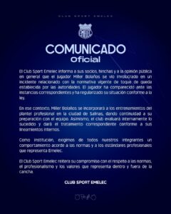 Miller Bolaños vuelve a la polémica: detenido, separado del plantel y sancionado en LigaPro