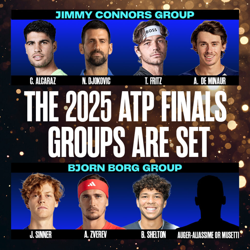 Por su parte, el italiano Jannik Sinner, actual número 1 del ranking mundial y defensor del título, lidera el grupo Bjorn Borg, donde compartirá con el alemán Alexander Zverev, al estadounidense Ben Shelton y el cupo entre Félix Auger-Aliassime y Lorenzo Musetti. El último cupo se definirá en el ATP 250 de Atenas: si Musetti conquista el título, ingresará al cuadro principal y el canadiense quedará como suplente. Sinner buscará repetir su histórica actuación de 2024, cuando ganó el trofeo sin ceder un solo set.