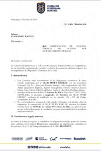 El Club Sport Emelec informó que rechaza la sanción de pérdida de tres puntos impuesta por la Federación Ecuatoriana de...