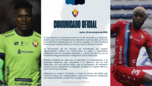 El Club Deportivo El Nacional oficializó este miércoles 23 de octubre de 2025 la desvinculación de los futbolistas David Estalin...