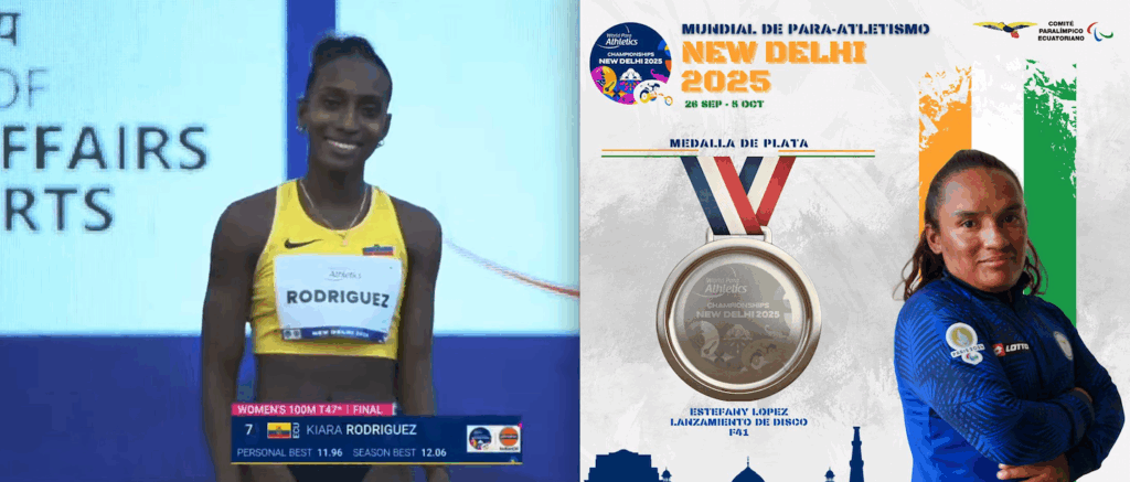 Pero la gloria tricolor no se detuvo ahí. La lanzadora Estefany López obtuvo la medalla de plata en la prueba de disco F41, con una marca de 29,81 metros, mejorando los bronces alcanzados en París 2023 y Kobe 2024. Con estas actuaciones, Ecuador ratifica su presencia protagónica en el para-atletismo mundial, celebrando una jornada histórica en India.