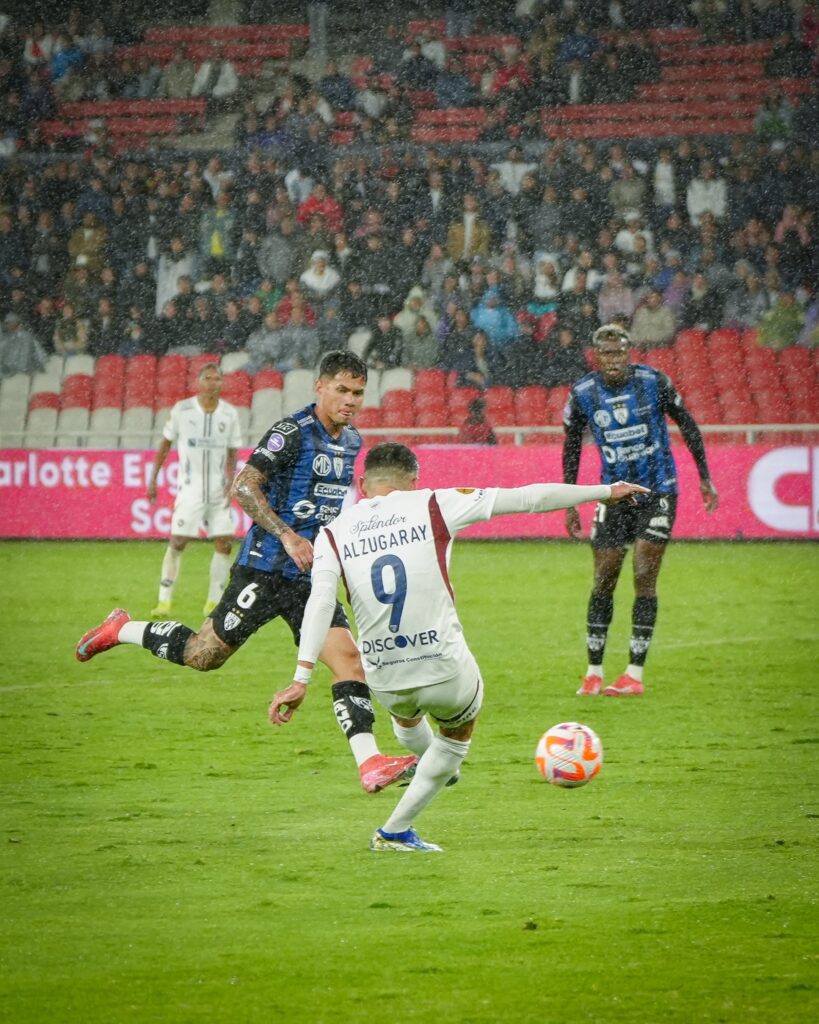 Liga de Quito e Independiente del Valle protagonizaron un duelo vibrante, cargado de intensidad, lluvia y constantes roces entre jugadores. Con la posibilidad de que IDV se consagre campeón con una victoria, el ambiente en el Rodrigo Paz Delgado fue eléctrico desde el arranque. Aunque los Rayados golpearon primero y tomaron ventaja, la U mostró carácter, peleó hasta el final y logró una remontada épica por 2-1 con un gol agónico de Lisandro Alzugaray.