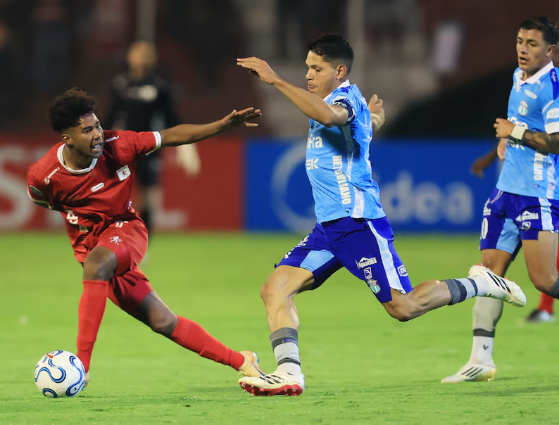 El equipo celeste se adelantó temprano en el marcador, a los 12 minutos, tras un autogol del defensor Josen Escobar luego de un tiro de esquina. Sin embargo, la reacción del cuadro colombiano fue rápida y efectiva: a los 24 minutos, el ecuatoriano Daniel Valencia marcó el empate con un remate cruzado dentro del área, cumpliendo con la ley del ex tras una buena jugada colectiva.