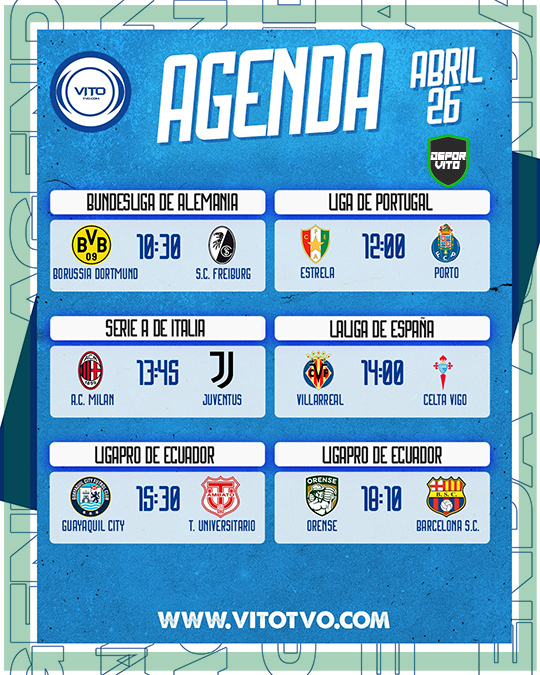 Agenda Deportiva Partidos destacados del domingo 26 de abril Eduardo D'Achiardi 26 de abril de 2026 0 Deja una respuesta Cancelar la respuestaTu dirección de correo electrónico no será publicada. Los campos obligatorios están marcados con *Comentario * Nombre * Correo electrónico * Web Guarda mi nombre, correo electrónico y web en este navegador para la próxima vez que comente.