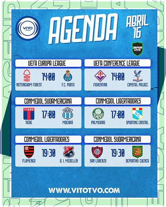 Agenda Deportiva Partidos destacados del jueves 16 de abril Eduardo D'Achiardi 16 de abril de 2026 0 Deja una respuesta Cancelar la respuestaTu dirección de correo electrónico no será publicada. Los campos obligatorios están marcados con *Comentario * Nombre * Correo electrónico * Web Guarda mi nombre, correo electrónico y web en este navegador para la próxima vez que comente.