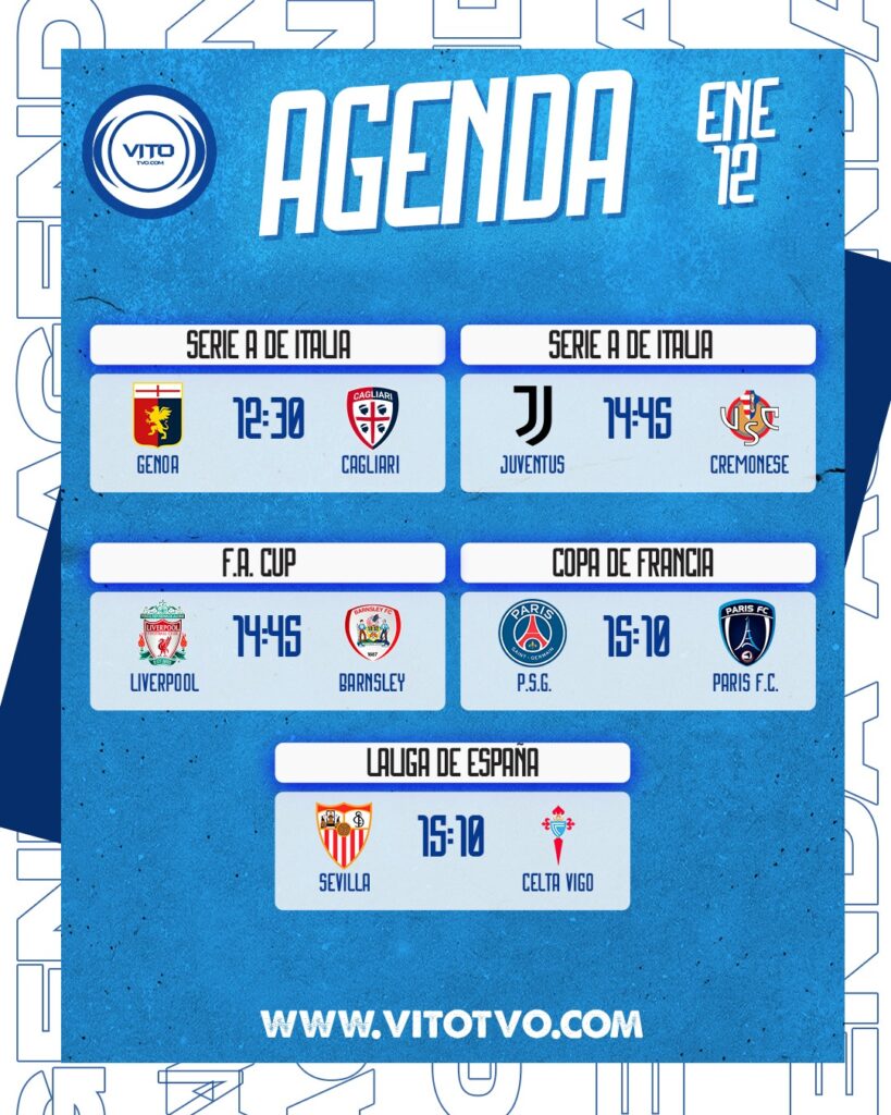 Agenda Deportiva Partidos destacados del lunes 12 de enero Eduardo D'Achiardi 12 de enero de 2026 0 Deja una respuesta Cancelar la respuestaTu dirección de correo electrónico no será publicada. Los campos obligatorios están marcados con *Comentario * Nombre * Correo electrónico * Web Guarda mi nombre, correo electrónico y web en este navegador para la próxima vez que comente.