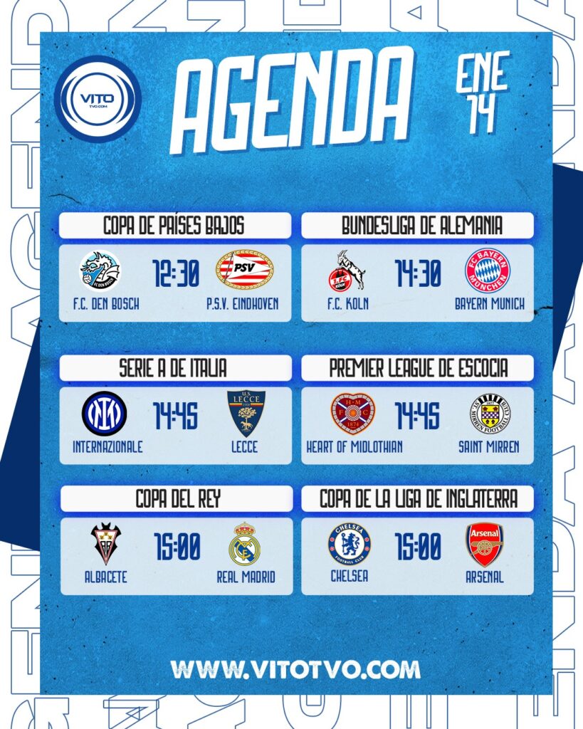 Agenda Deportiva Partidos destacados del miércoles 14 de enero Eduardo D'Achiardi 14 de enero de 2026 0 Deja una respuesta Cancelar la respuestaTu dirección de correo electrónico no será publicada. Los campos obligatorios están marcados con *Comentario * Nombre * Correo electrónico * Web Guarda mi nombre, correo electrónico y web en este navegador para la próxima vez que comente.