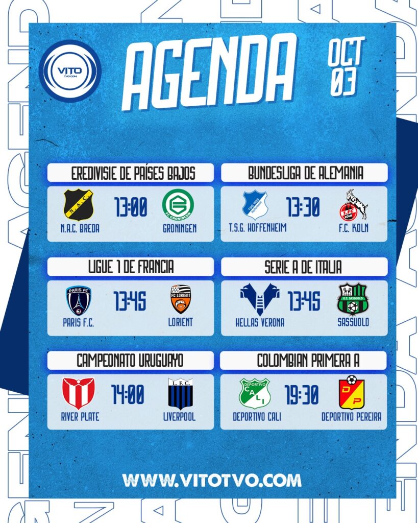 Agenda Deportiva Partidos destacados del viernes 3 de octubre Eduardo D'Achiardi 3 de octubre de 2025 0 Deja una respuesta Cancelar la respuestaTu dirección de correo electrónico no será publicada. Los campos obligatorios están marcados con *Comentario * Nombre * Correo electrónico * Web Guarda mi nombre, correo electrónico y web en este navegador para la próxima vez que comente.