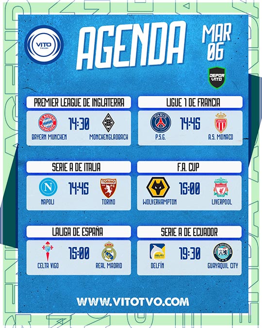 Agenda Deportiva Partidos destacados del viernes 6 de marzo Eduardo D'Achiardi 6 de marzo de 2026 0 Deja una respuesta Cancelar la respuestaTu dirección de correo electrónico no será publicada. Los campos obligatorios están marcados con *Comentario * Nombre * Correo electrónico * Web Guarda mi nombre, correo electrónico y web en este navegador para la próxima vez que comente.