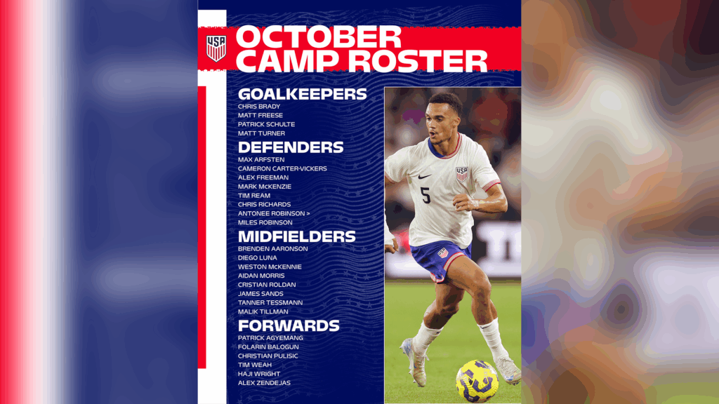 El seleccionador de Estados Unidos, Mauricio Pochettino, dio a conocer la lista de 26 convocados para la fecha FIFA de octubre, donde la escuadra norteamericana se medirá ante Ecuador en Austin (10 de octubre) y frente a Australia en Colorado (14 de octubre). Ambos encuentros servirán de preparación rumbo a la Copa Mundial 2026, torneo en el que las tres naciones ya están clasificadas.