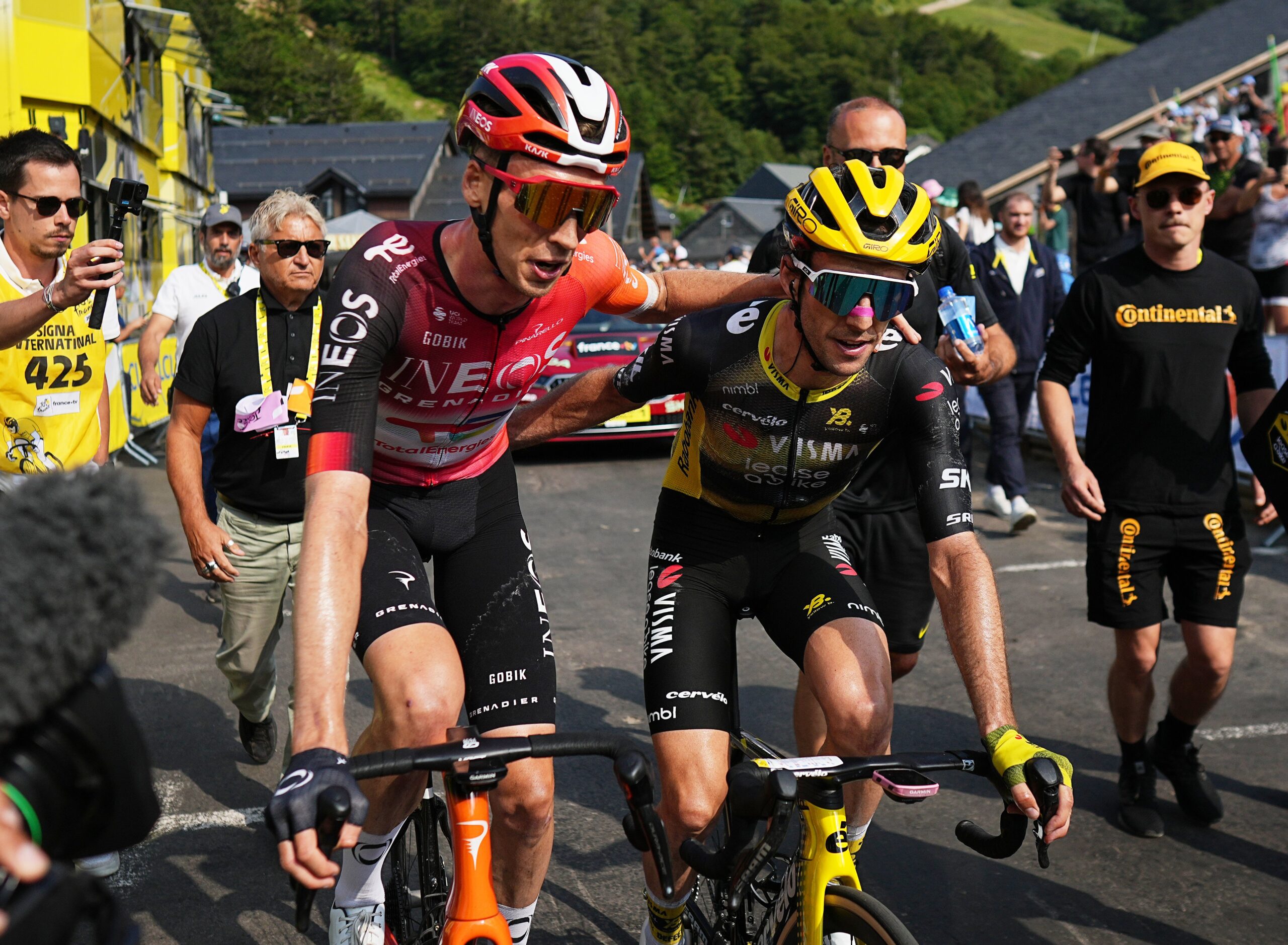 La etapa también tuvo protagonismo para otros aspirantes: Remco Evenepoel atacó en el final y subió al tercer lugar de la general (a 1:29), mientras que Vingegaard es cuarto (a 1:49). En la fiesta nacional francesa, hubo celebración local gracias a Lenny Martínez, quien se adueñó del maillot de lunares al mejor escalador. El ecuatoriano Jhonatan Narváez subió a la posición 17 en la clasificación general.